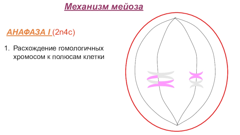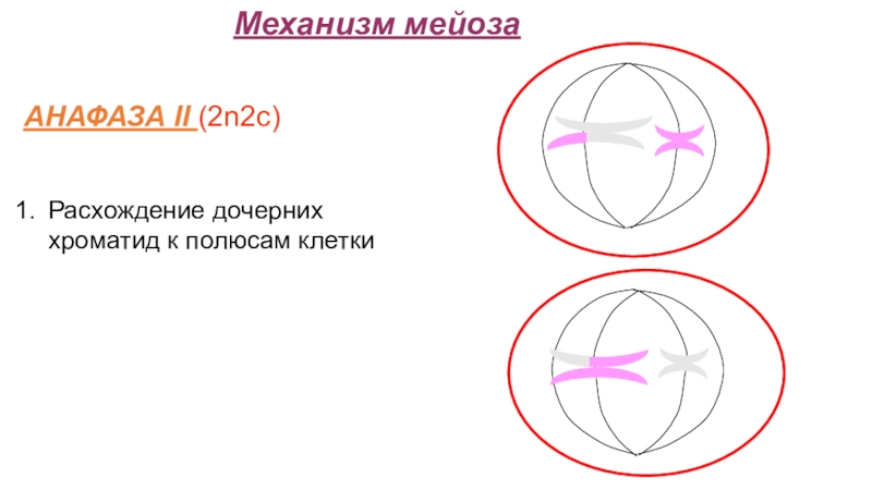 Слайд 9Анафаза (4n4c). Делятся центромеры хромосом и у каждой хроматиды появляется своя