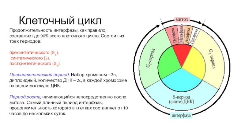 Продолжительность интерфазы, как правило, составляет до 90% всего клеточного