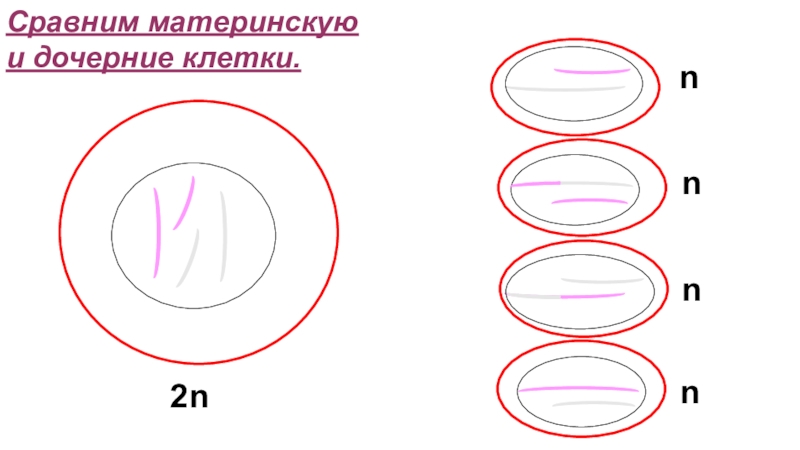 6) в телофазе 2 - nс (в клетках остаются однохроматидные хромосомы).