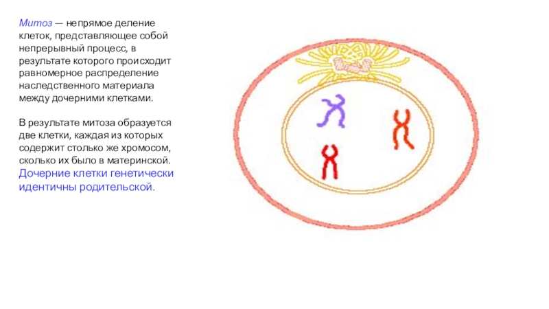 Слайд 6Митоз — непрямое деление клеток, представляющее собой непрерывный процесс, в результате