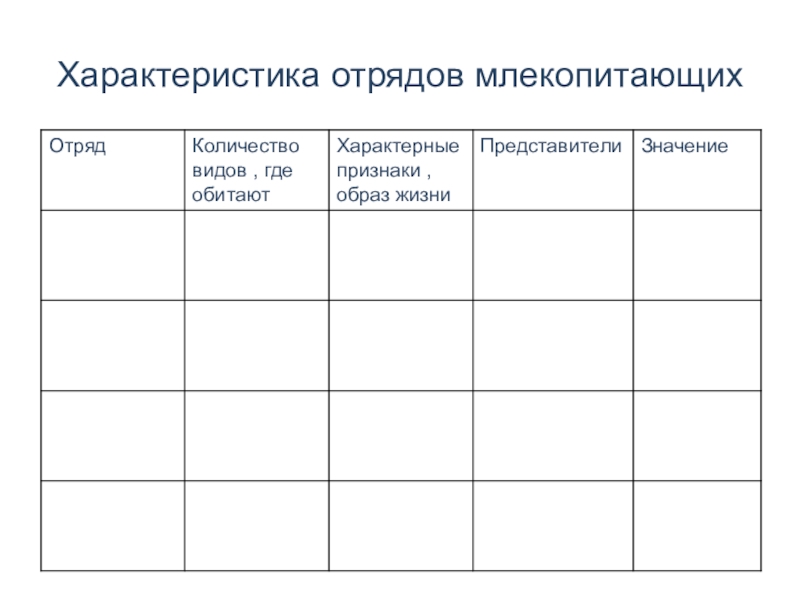 Слайд 12Характеристика отрядов млекопитающих