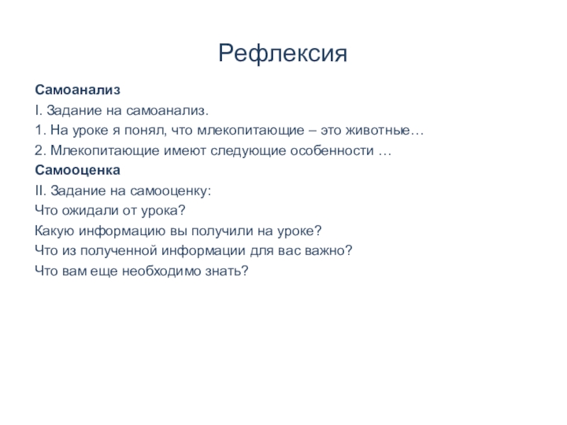 1. На уроке я понял, что млекопитающие