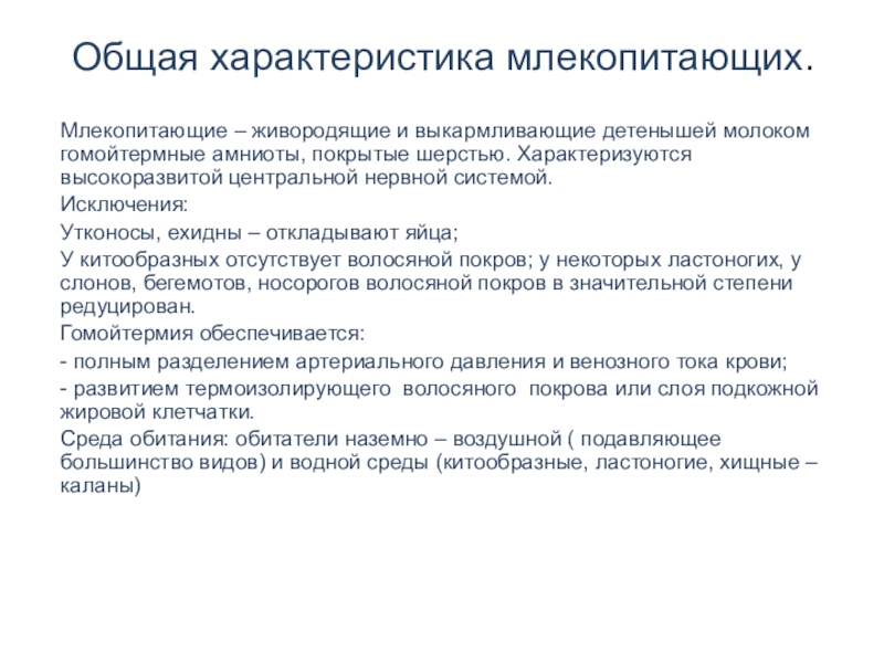 Млекопитающие – живородящие и выкармливающие детенышей молоком гомойтермные амниоты,