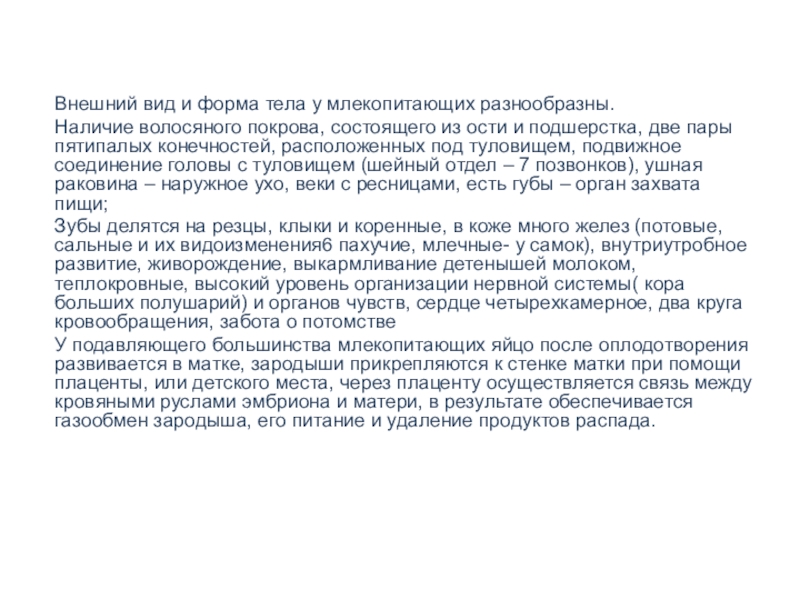 2. Млекопитающие имеют следующие особенности …