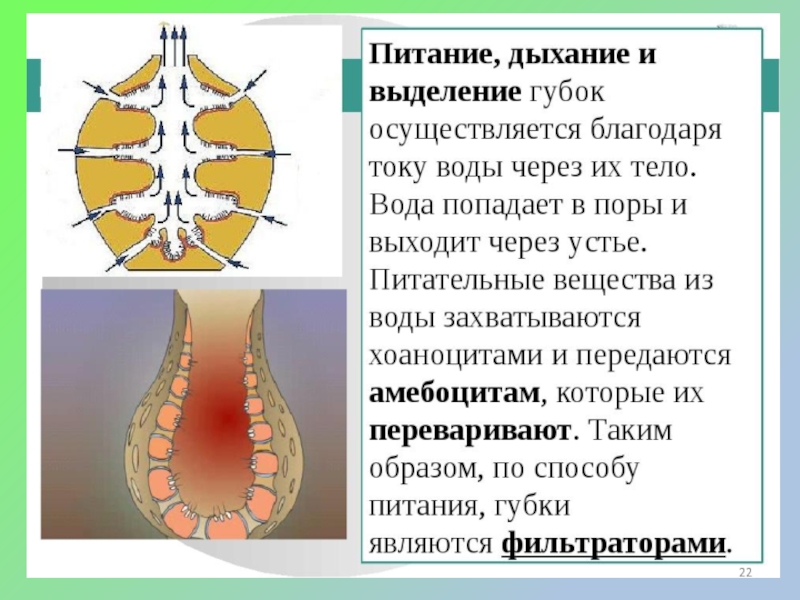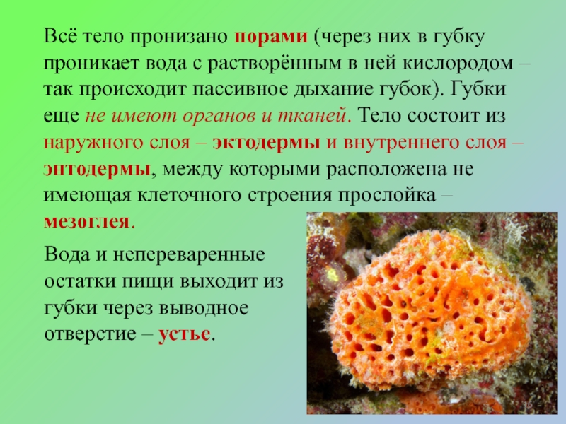 Вода и непереваренные остатки пищи выходит из губки через выводное отверстие – устье.