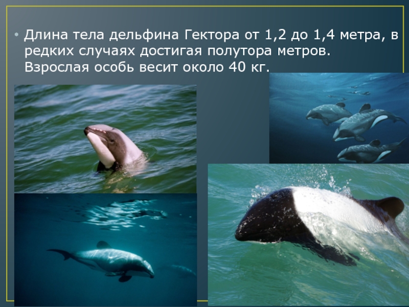 Длина тела дельфина Гектора от 1,2 до 1,4 метра, в редких