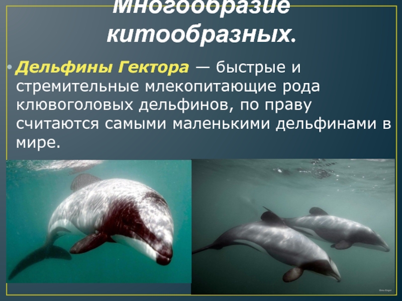Многообразие китообразных.Дельфины Гектора — быстрые и стремительные млекопитающие рода клювоголовых дельфинов, по праву считаются самыми маленькими дельфинами