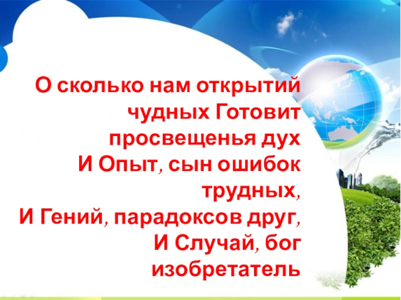 О сколько нам открытий чудных Готовит просвещенья дух