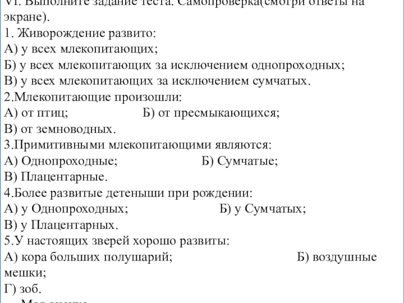Слайд 44VI. Выполните задание теста. Самопроверка(смотри ответы на экране).