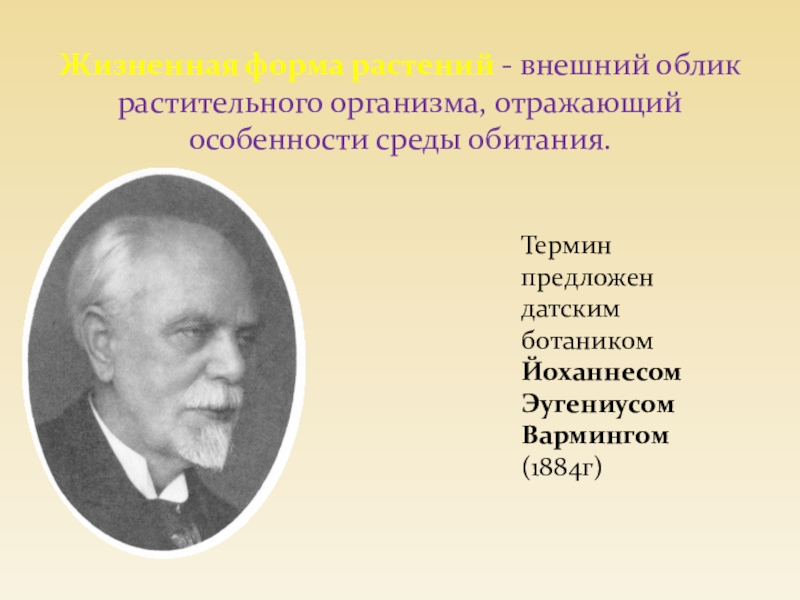 Термин предложен датским ботаником Йоханнесом Эугениусом Вармингом