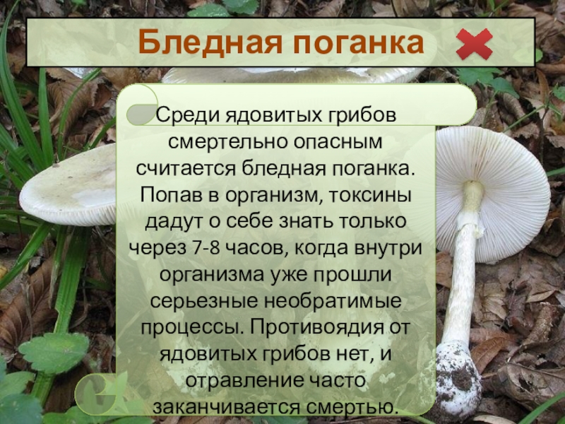 Среди ядовитых грибов смертельно опасным считается бледная поганка. Попав в