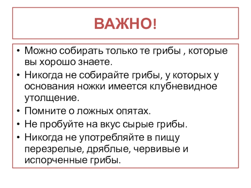 Можно собирать только те грибы , которые вы хорошо знаете.