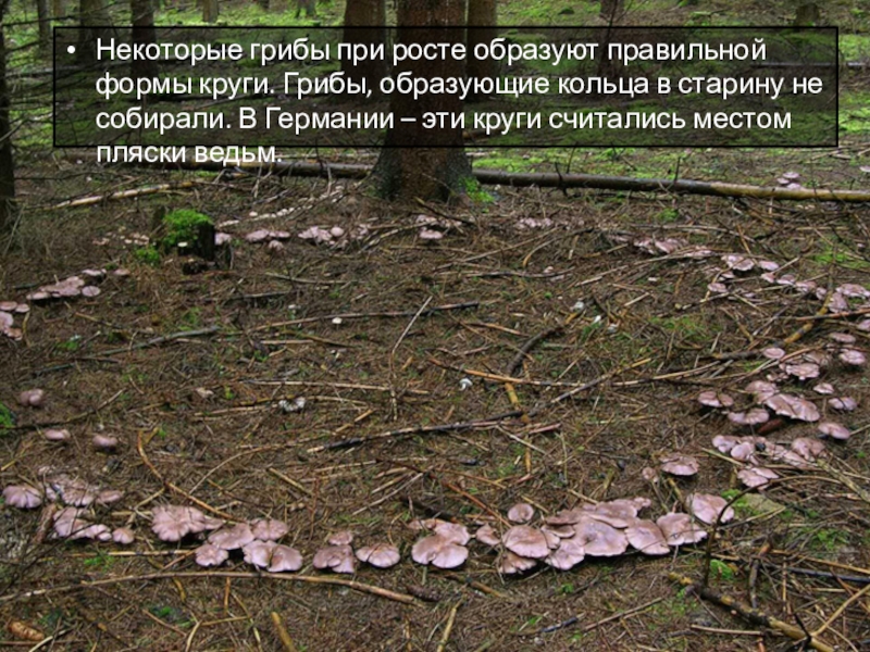 Слайд 3Некоторые грибы при росте образуют правильной формы круги. Грибы, образующие кольца
