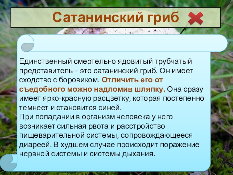Единственный смертельно ядовитый трубчатый представитель – это сатанинский гриб. Он