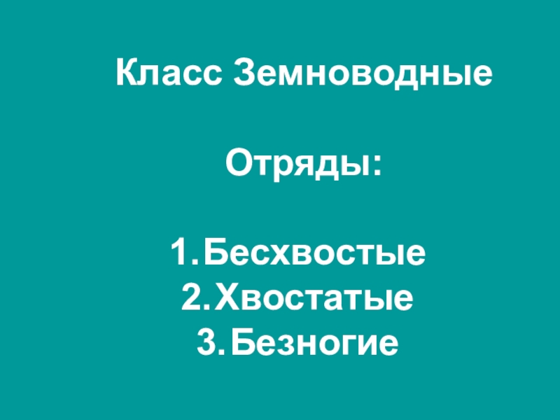 Класс Земноводные Отряды:БесхвостыеХвостатыеБезногие