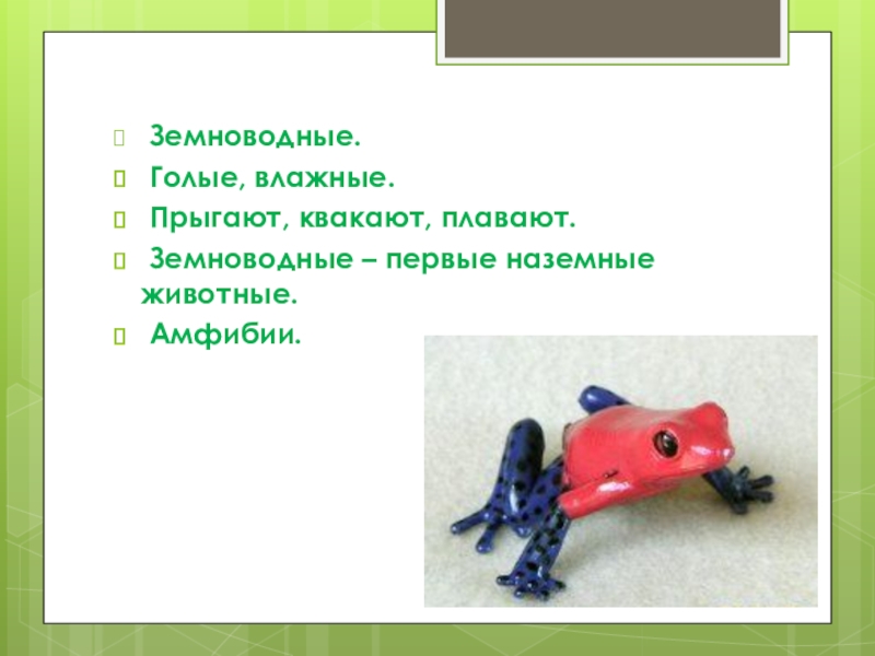 Земноводные. Голые, влажные. Прыгают, квакают, плавают. Земноводные – первые наземные животные. Амфибии.