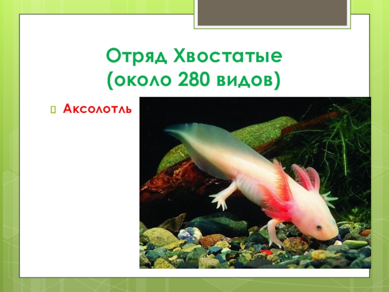 Отряд Хвостатые  (около 280 видов)Аксолотль