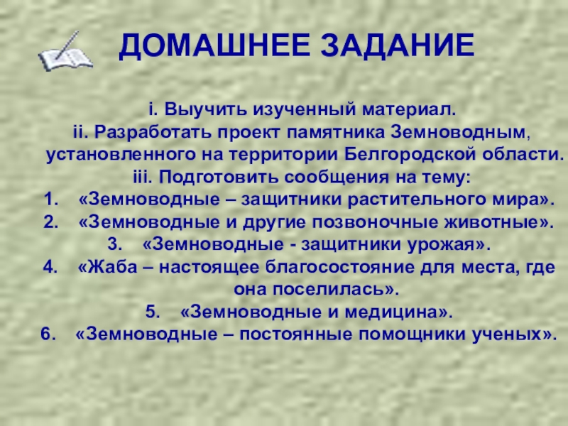НА ПРИМЕРЕ МЕСТНЫХ ВИДОВ ЗЕМНОВОДНЫХ УГЛУБИТЬ И РАСШИРИТЬ ПОНЯТИЕ О КЛАССЕ ЗЕМНОВОДНЫЕ