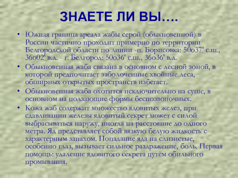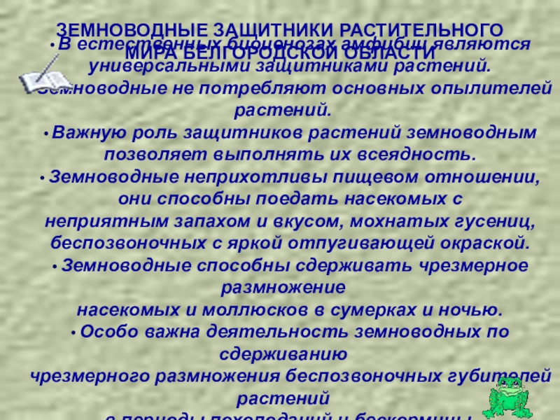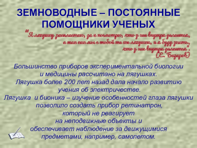 Слайд 33ЗЕМНОВОДНЫЕ – ПОСТОЯННЫЕ ПОМОЩНИКИ УЧЕНЫХ