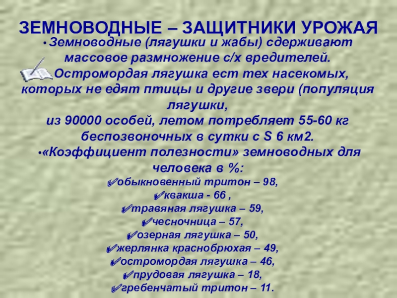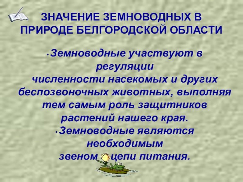 Слайд 23ЗНАЧЕНИЕ ЗЕМНОВОДНЫХ