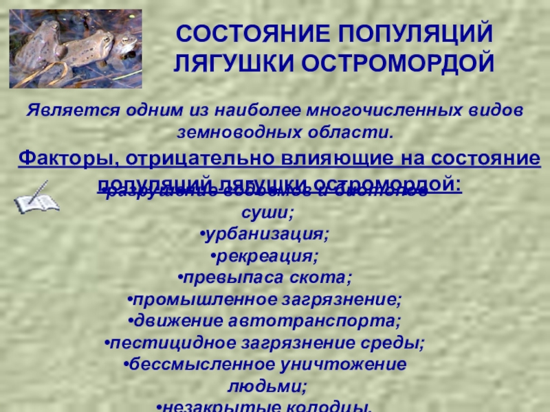 Факторы, отрицательно влияющие на состояние популяций лягушки остромордой: