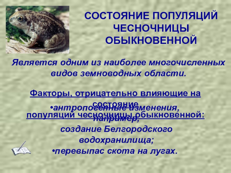 Слайд 37СОСТОЯНИЕ ПОПУЛЯЦИЙ ЛЯГУШКИ ОСТРОМОРДОЙ