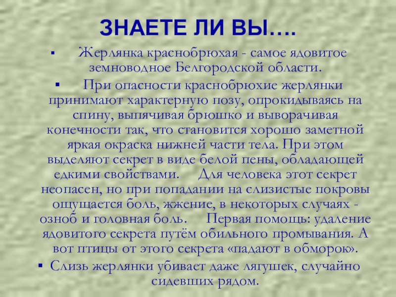 Жерлянка краснобрюхая - самое ядовитое земноводное Белгородской