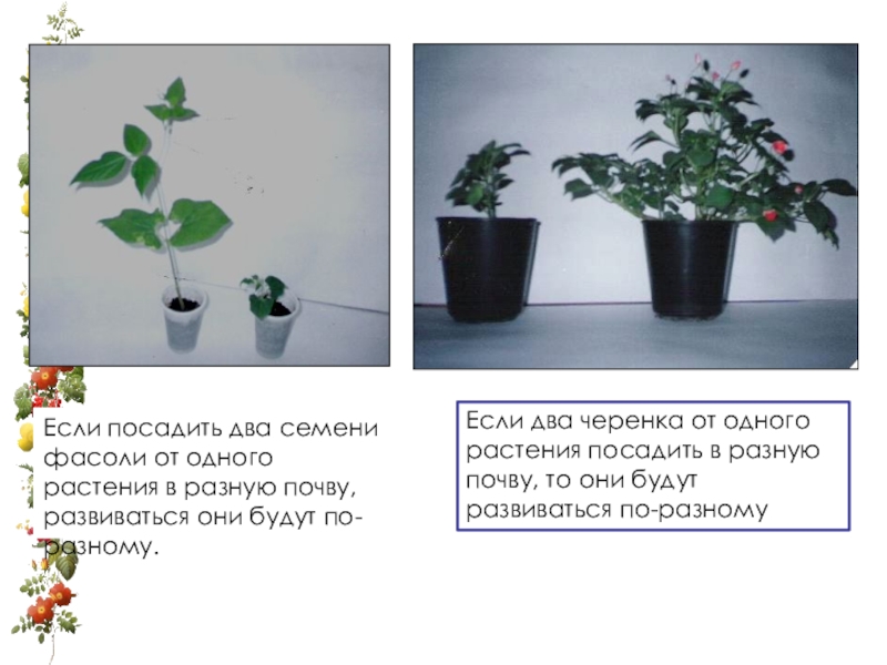 Если два черенка от одного растения посадить в разную почву, то они будут развиваться по-разному