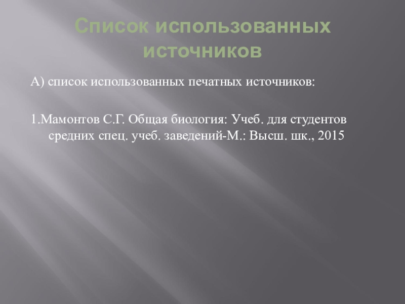1.Мамонтов С.Г. Общая биология: Учеб.