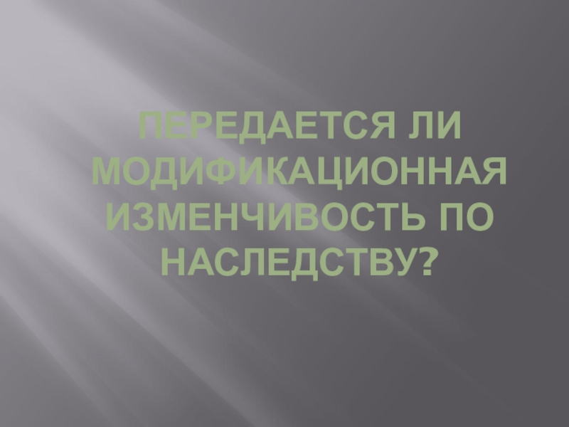 Слайд 4ПЕРЕДАЕТСЯ ЛИ МОДИФИКАЦИОННАЯ ИЗМЕНЧИВОСТЬ ПО НАСЛЕДСТВУ?