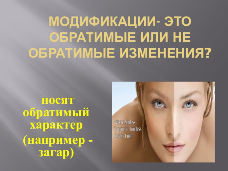 Слайд 10МОДИФИКАЦИИ- ЭТО ОБРАТИМЫЕ ИЛИ НЕ ОБРАТИМЫЕ ИЗМЕНЕНИЯ?