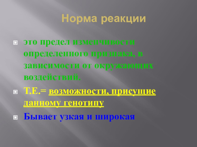 3. Проявление признака не выходит за пределы нормы реакции, которая определяется
