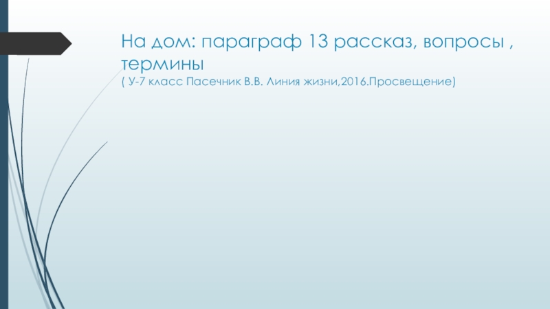 Слайд 7На дом: параграф 13 рассказ, вопросы , термины ( У-7 класс Пасечник