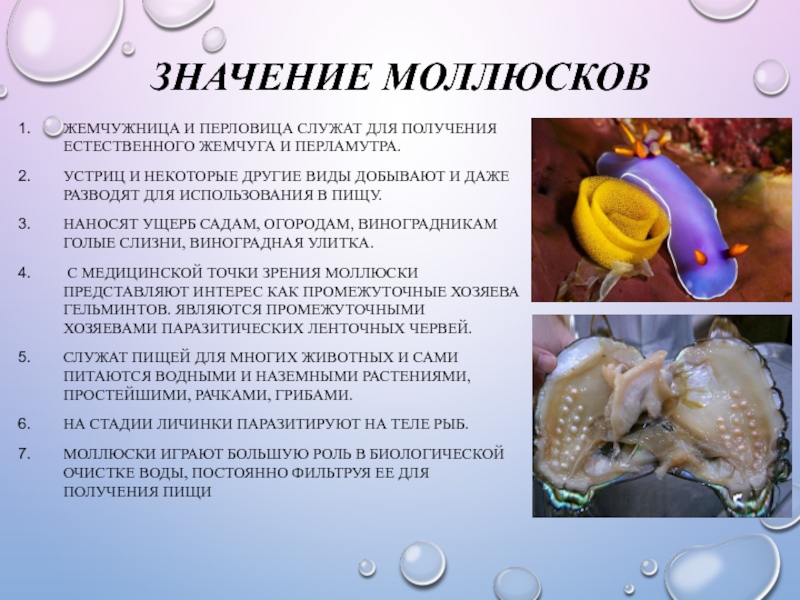 Слайд 8ЗНАЧЕНИЕ МОЛЛЮСКОВ