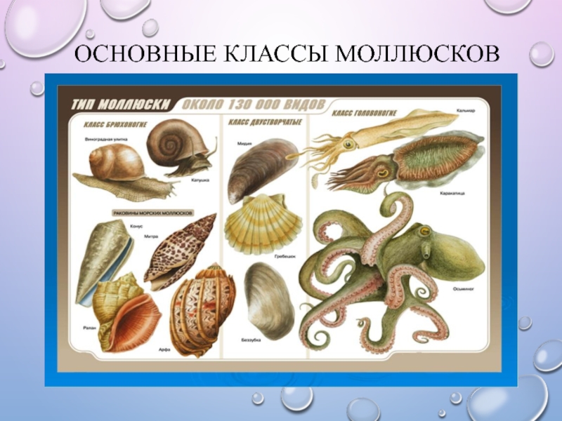 Слайд 7ОСНОВНЫЕ КЛАССЫ МОЛЛЮСКОВ
