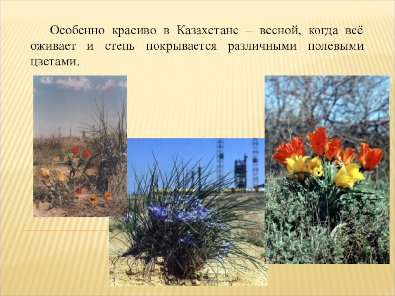 Слайд 12 Особенно красиво в Казахстане – весной, когда всё оживает и степь