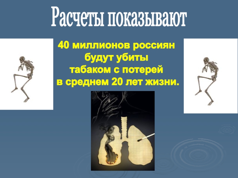 Алкоголизм, курение, наркомания, токсикомания ухудшают социальную обстановку в стране, обрекают на гибель или болезни будущие поколения россиян.