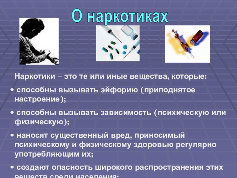 Слайд 26Наркотики – это те или иные вещества, которые: