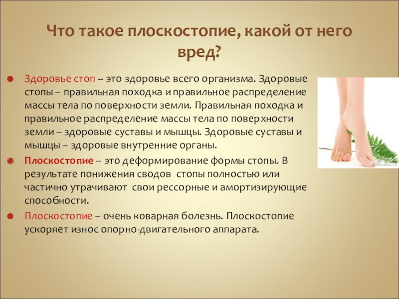 Слайд 32Что такое плоскостопие, какой от него вред?