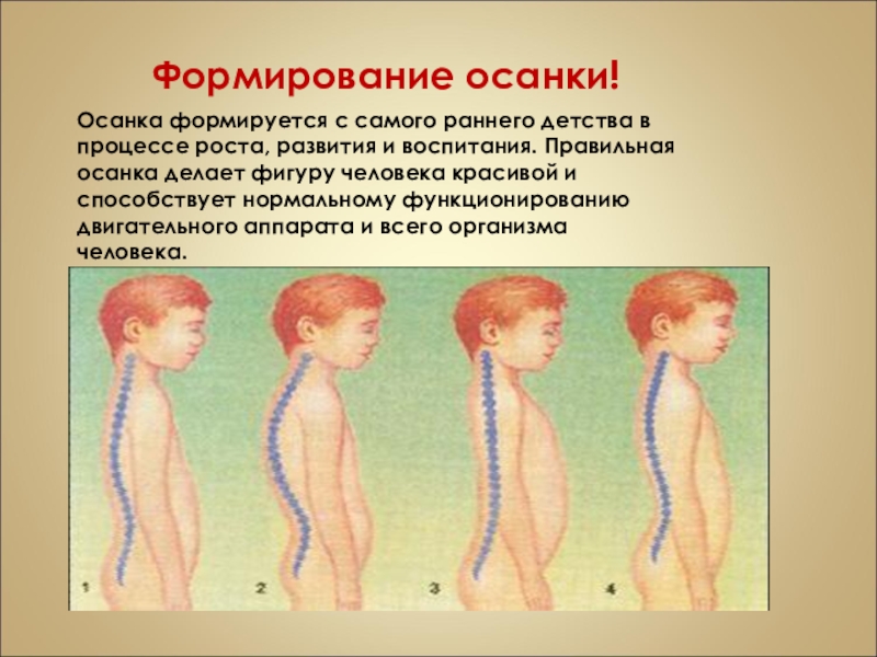 Слайд 11Осанка формируется с самого раннего детства в процессе роста, развития и