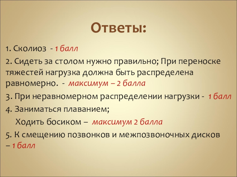 1. Сколиоз - 1 балл