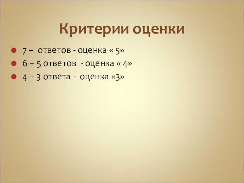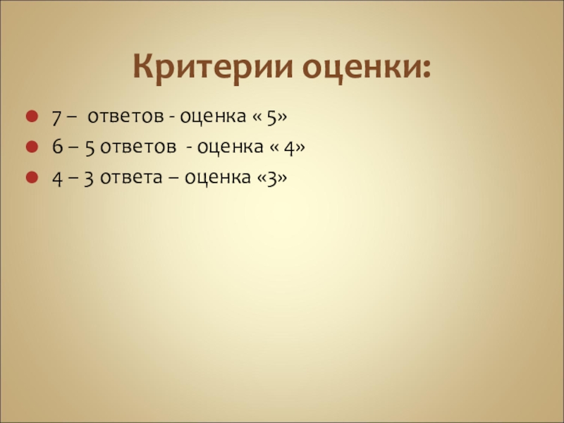 7 – ответов - оценка « 5»