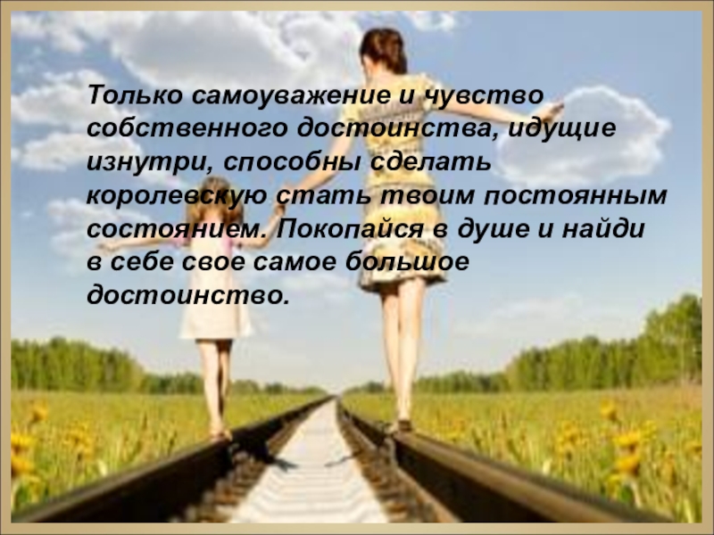 королевскую стать твоим постоянным состоянием. Покопайся в душе и найди в себе свое самое большое достоинство.