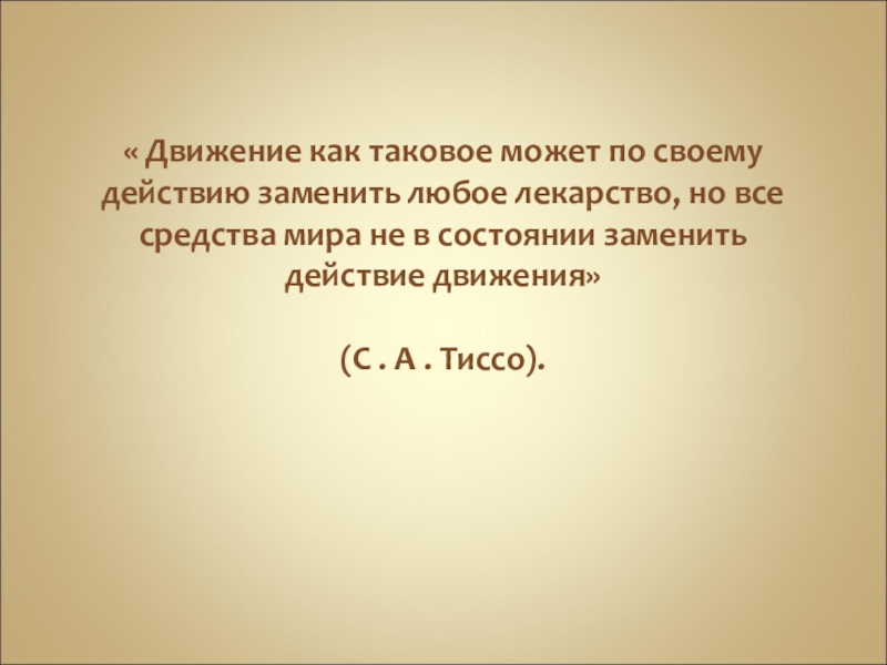 Слайд 2« Движение как таковое может по своему действию заменить любое лекарство,