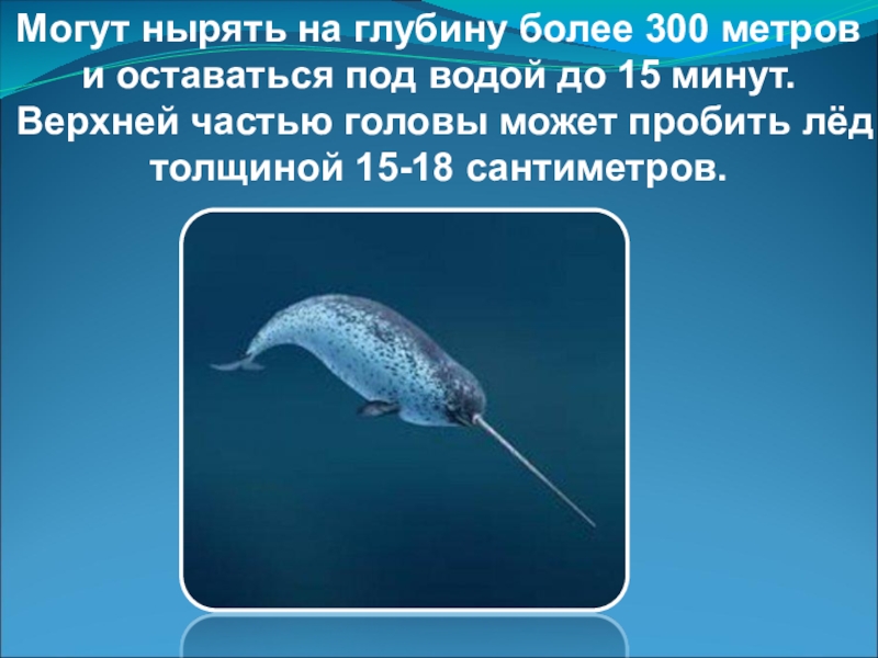 В поисках пищи они могут нырять на глубину до 1 км., и с помощью рога спугивают рыбу со дна.