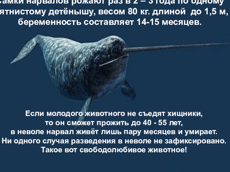 в неволе нарвал живёт лишь пару месяцев и умирает.