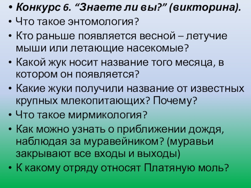 Слайд 26Конкурс 6. “Знаете ли вы?” (викторина).