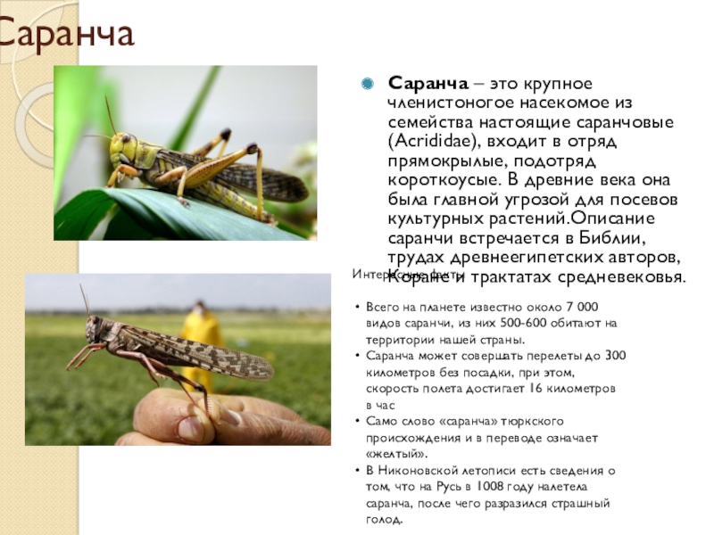 Само слово «саранча» тюркского происхождения и в переводе означает «желтый».
