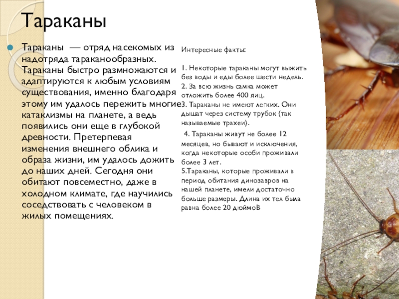 1. Некоторые тараканы могут выжить без воды и еды более шести недель.
