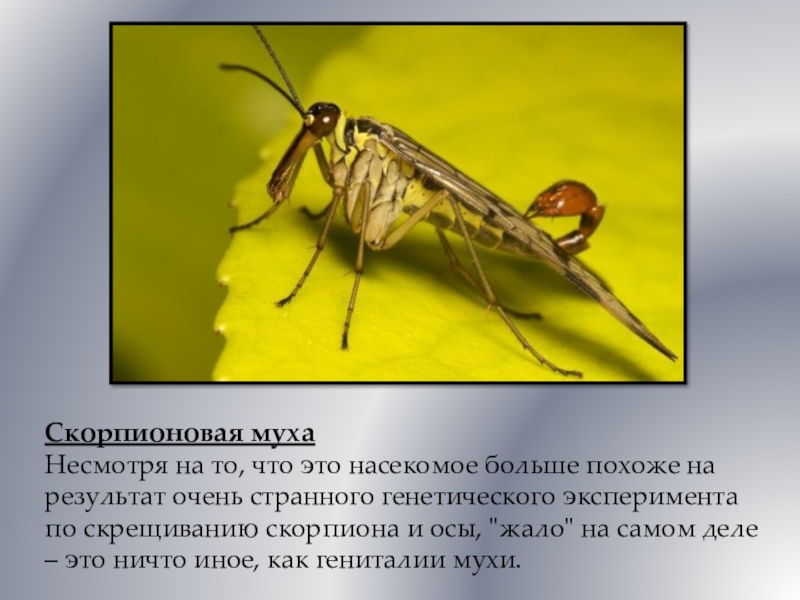 очень странного генетического эксперимента по скрещиванию скорпиона и осы, "жало" на самом деле – это ничто иное, как гениталии мухи.